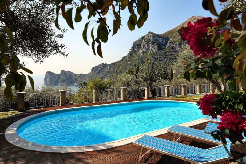 Splendida villa a Nerano con giardino, piscina e vista sul mare.