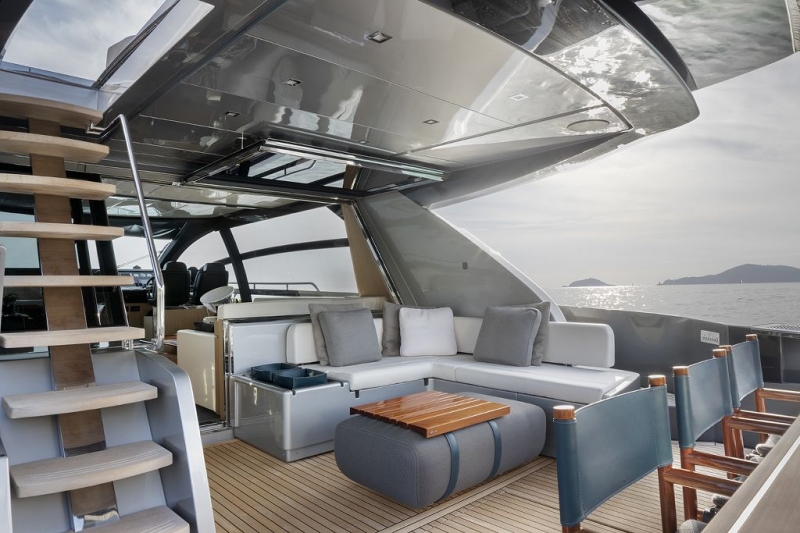 Riva 76 è un elegante Perseo COSTRUITO NEL 2019, che colpisce immediatamente per le sue caratteristiche sportive ed eleganti ulteriormente esaltate dalle sue sfumature di colore. Lo scafo presenta una nuova tonalità di metallo argento - 'Moon Grey' - come colore dominante, combinato con la classica tonalità scura di Riva, 'Bright Black'. L'aspetto sportivo dello yacht è ulteriormente sottolineato dagli oltre 40 metri quadrati di superfici vetrate: l'ampio vetro dello scafo, su entrambi i lati, comprende due superfici ellittiche, idealmente collegate dal logo Riva, uno dei materiali distintivi e tradizionali del marchio. La vetrata laterale sul ponte principale, a sua volta, è idealmente 'tagliata' da un corrimano installato lungo il bordo della sovrastruttura, il che rende il profilo dello yacht ancora più snello ed estende le dimensioni complessive della vetratura nel salone principale, garantendo la massima sicurezza lungo i passaggi esterni. L'ampio prendisole si armonizza perfettamente con le linee aerodinamiche dello yacht e garantisce la massima privacy e relax. il Riva Perseo 76 può ospitare fino a 6 ospiti in 3 cabine. 2 membri dell'equipaggio. Con base in Italia e disponibile per il sud della Francia, la Sardegna, la Corsica, Napoli e la zona della Costiera Amalfitana. Gli Interni sono eleganti, minimali e raffinati, le ampie finestre danno luminosità all'area, l'ampio salone è arricchito da comodi divani e Tv Lcd Led 40 '. la sala da pranzo è separata dalla cucina che è ben attrezzata con Forno, Frigorifero combinato 230 V, lavastoviglie, lavatrice. La zona notte offre La spaziosa suite armatoriale a due letti a centro barca con Tv Lcd Led 32 ', doppia suite Vip a prua con Tv Lcd Led 22' e una cabina doppia con letti singoli separati. Ogni cabina dispone di bagno privato con box doccia. Lo yacht ha Ampi spazi prendisole a prua e a poppa, con comodi cuscini per il massimo del comfort e del relax, ha un'ampio pozzetto con tavolo da pranzo per mangiare all'aperto, e una comoda piattaforma da bagno per un facile accesso al mare.