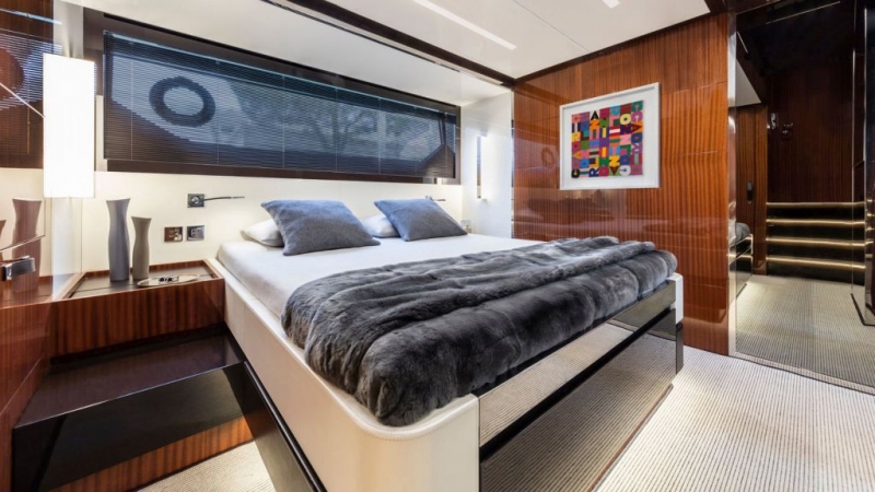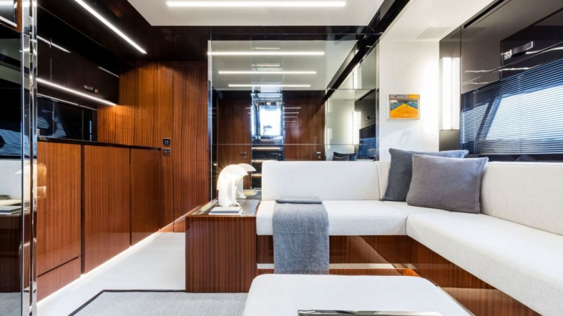Nata dalla collaborazione tra Officina Italiana Design e Direzione Engineering Ferretti Group, il Rivale è la sintesi di tutte le qualità che hanno reso il marchio Riva l’eccellenza indiscussa della nautica italiana. La Suite principale occupa tutta la larghezza massima dell’imbarcazione. L’ampia finestra situata sulla testata del letto dona un senso di profondità. Anche la cabina VIP situata a prua, vanta uno spazio ampio con due finestre laterali. Entrambe le cabine dispongono di un bagno privato. Il salone è un luogo di relax. Il divano a forma di L è situato al di sotto una grande finestra che dona grande luminosità all’ambiente ed è strategicamente posizionato in corrispondenza di un grande specchio che raddoppia idealmente le dimensioni del salotto. La cucina è una vera e propria opera d'arte, con frigorifero e scomparto per le bevande ed i bicchieri nascosti dietro lo specchio del salotto. A sinistra, accessibile dal ponte principale, si trova la cabina equipaggio dotata di un letto singolo, doccia, Wc e lavandino.