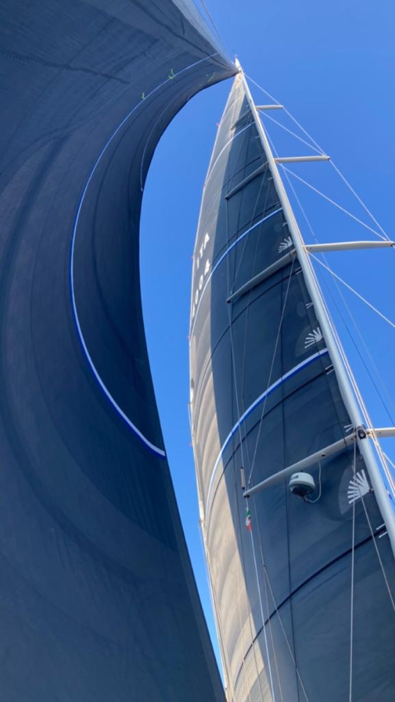 sovrastruttura in Carbonio e albero e vele in Carbonio.