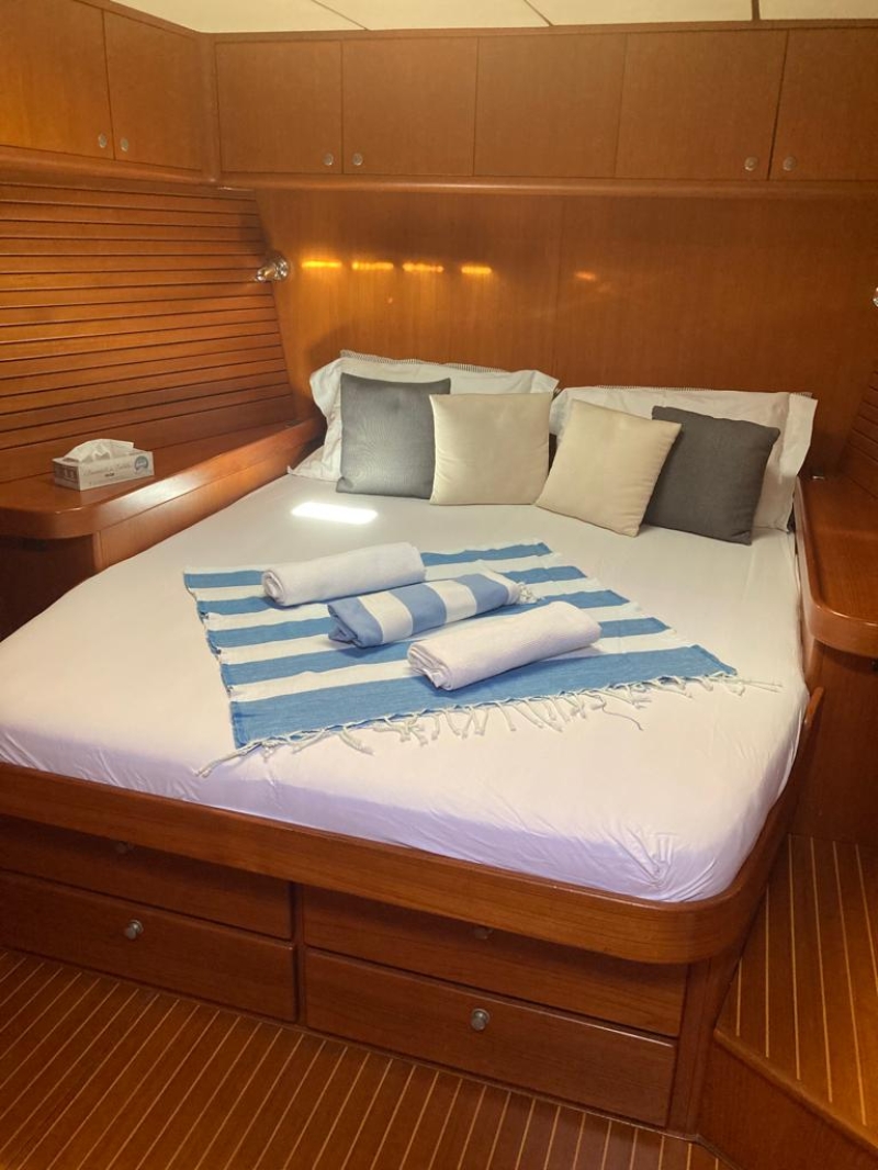 Lo yacht ha un interno completamente attrezzato, quattro cabine ospiti con bagno privato e una cabina equipaggio.
