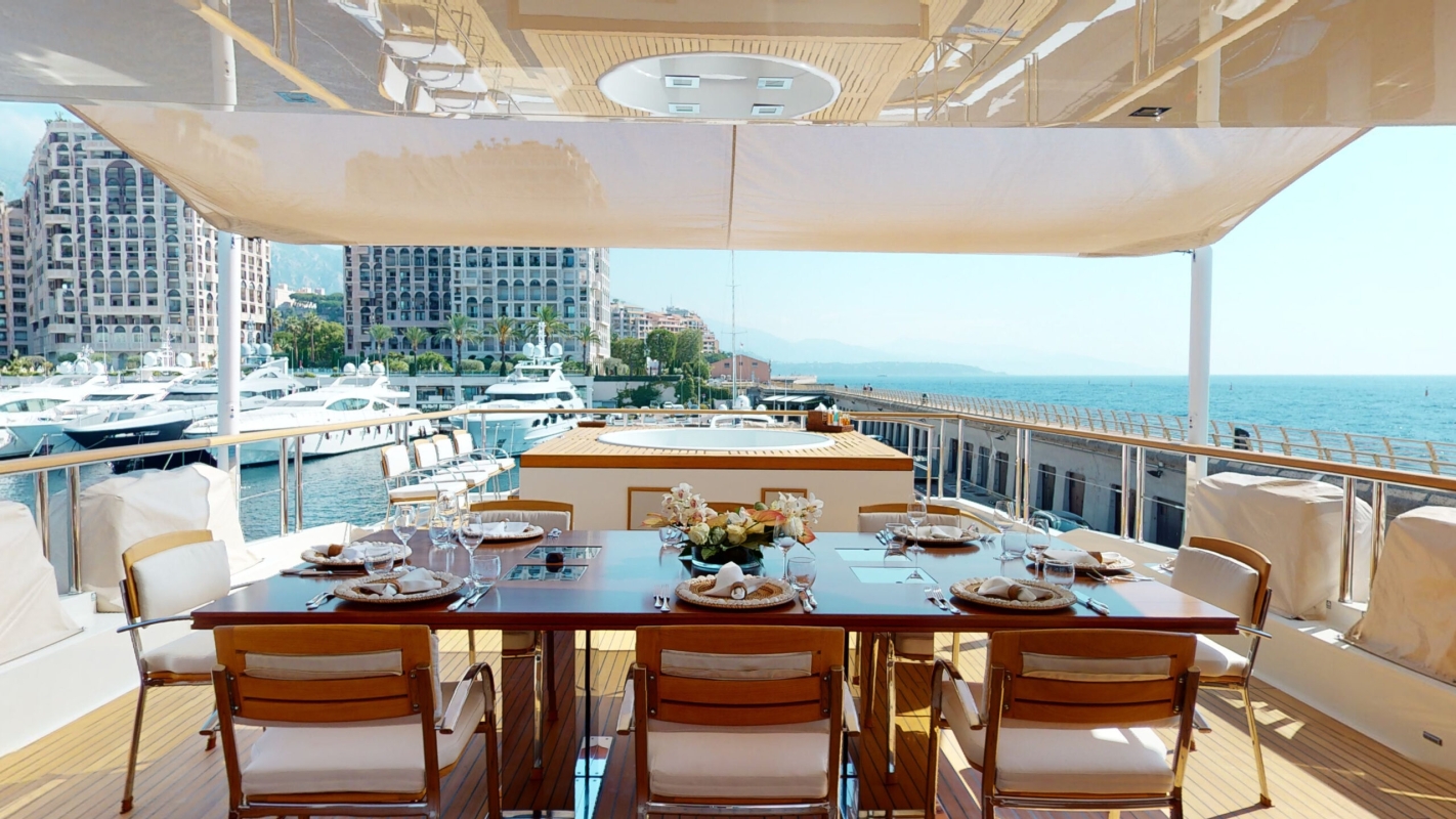 una cabina VIP e due cabine doppie. Può trasportare fino a 10 membri dell'equipaggio per garantire un'esperienza di lusso rilassata e confortevole.